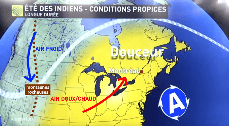 Schéma d'une situation typique d'été indien en Amérique du Nord - via MétéoMédia