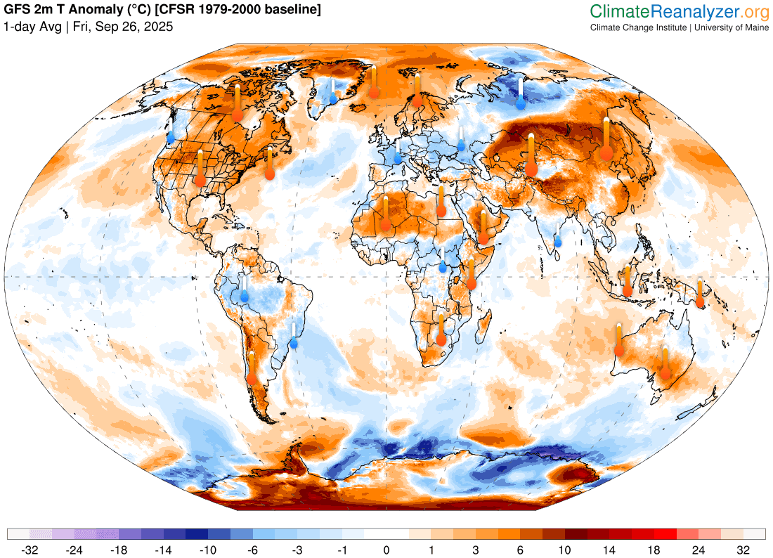 Anomalies de températures sur le globe en ce 26 septembre 2025 – Climate Reanalyzer