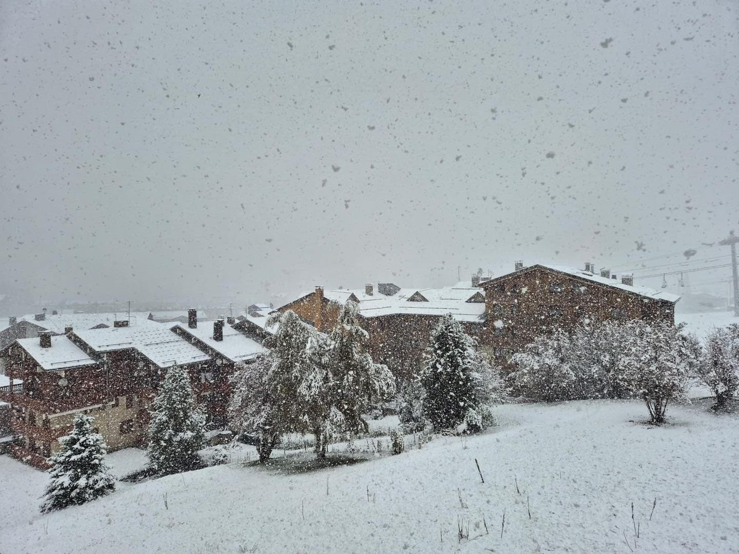 En effet, les flocons se sont ensuite abaissés autour de 1700 mètres d'altitude en cours d'après-midi de ce mercredi 24 septembre 2025 dans certains massifs du nord des Alpes, notamment sur la partie frontalière de la chaîne. La photo ci-dessous a été prise dans la station de Val-d'Isère en Savoie, à une altitude de 1800 mètres. De fortes averses de neige se produisaient à la mi-journée, recouvrant rapidement le paysage et lui redonnant des teintes hivernales, quelques jours après des températures remarquablement douces.