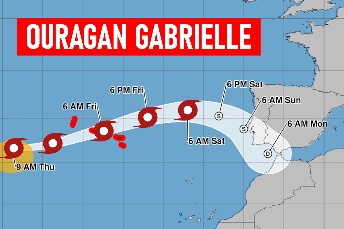 L'ouragan Gabrielle s'apprête à toucher les Açores et finira sa course sur le Portugal, après avoir perdu son statut d'ouragan. Il apportera du mauvais temps, entre vents forts et pluies orageuses.