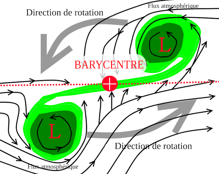 Schéma de l'effet Fujiwara entre deux systèmes cycloniques - Wikipedia