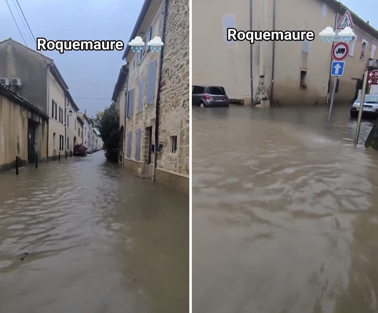 Inondations à Roquemaure (30) dans l'après-midi du 21 septembre 2025 – Capture vidéo via Météo Sorguaise et Avignonnaise