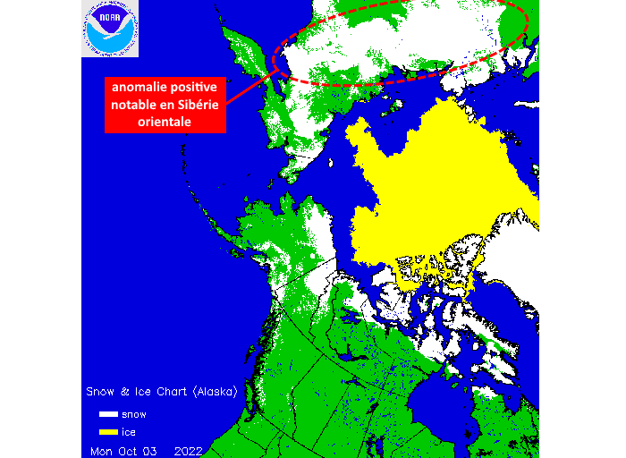 Extension de la neige en Eurasie par rapport à la normale en ce début octobre 2022 - via Environnement Canada