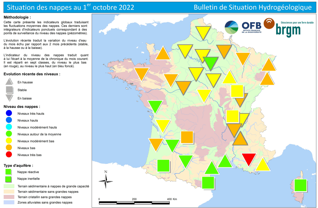 État des nappes phréatiques en France au 1er octobre 2022 - via BRGM