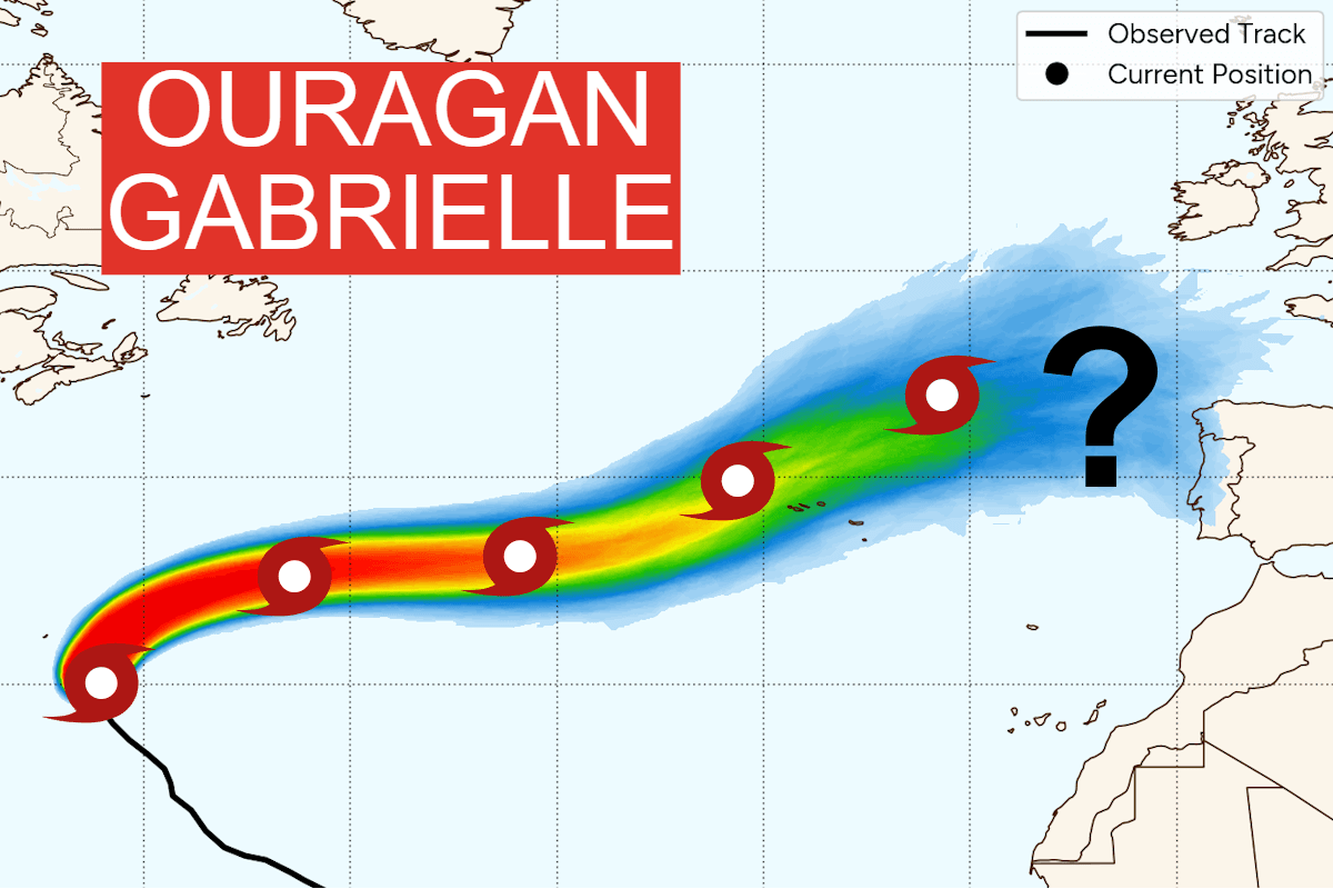 Si le scénario qui apparaît le plus probable venait à se vérifier (décalage puis comblement de la dépression vers le Portugal), la France ne serait pas directement concernée par les conséquences de l'ex-ouragan Gabrielle. Cependant, cette dépression et son afflux d'air doux devrait tout de même permettre aux températures de remonter quelque peu en France au cours du week-end des samedi 27 et dimanche 28 septembre 2025. Par ailleurs, vous aurez peut-être constaté que les prévisions ont beaucoup évolué ces derniers jours (surtout dès ce week-end), du fait du caractère difficilement prévisible des ouragans et de leurs restes. Ces phénomènes ont une fâcheuse tendance à réduire la fiabilité des prévisions.