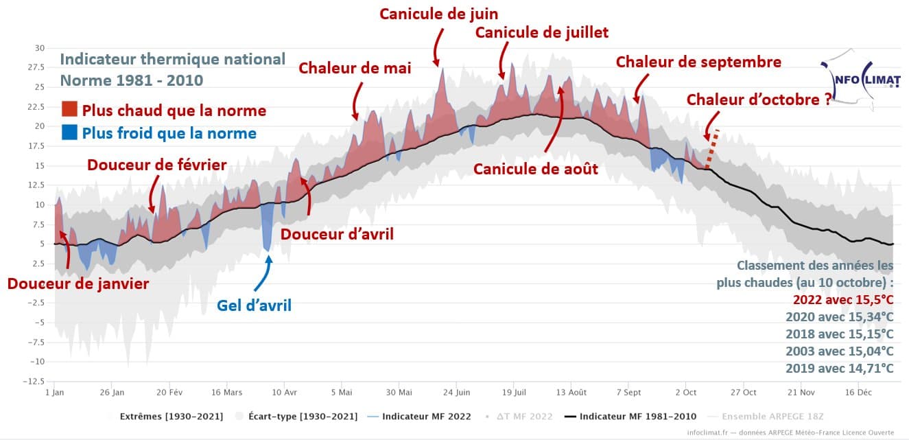 Indicateur thermique national depuis le 1er janvier 2022 sur la France – Via infoclimat.fr et Twitter @SergeZaka