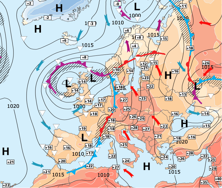 Noms des dépressions et anticyclones prévus pour mardi 11 mai 2021 à midi (Berlin)