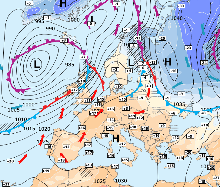 + Mais une nouvelle cellule anticyclonique se formera à l’arrière garantissant un temps sec et stable au moins jusqu’en fin de semaine prochaine !